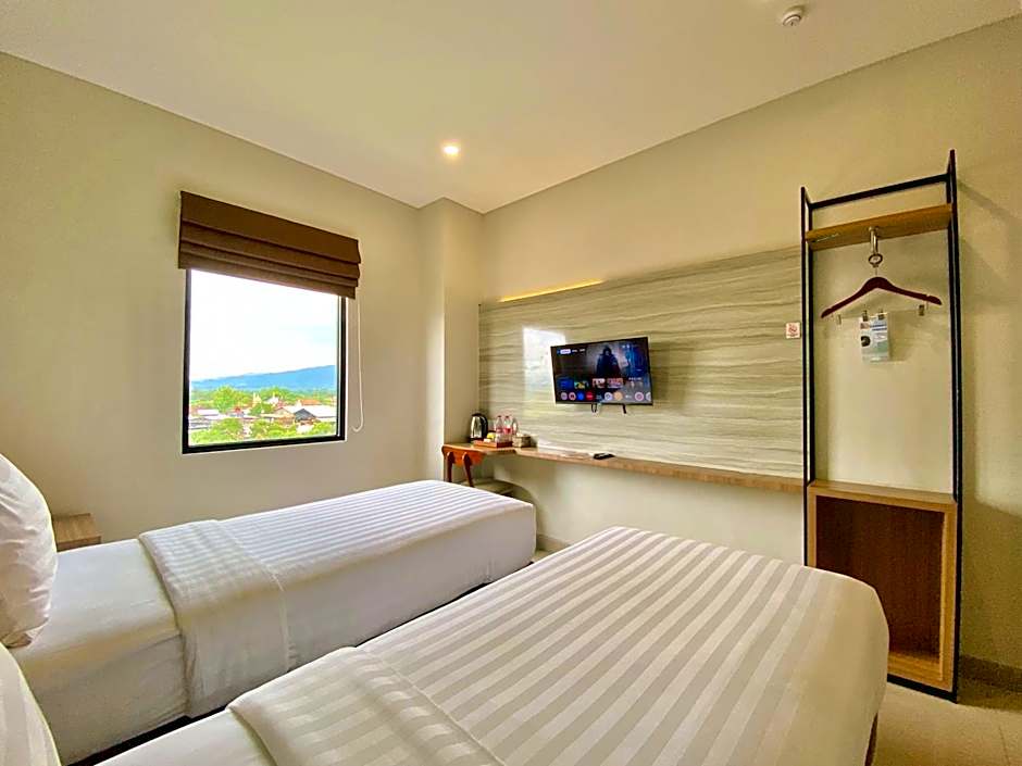 Offering free toiletries, this twin room includes a private bathroom with a shower and slippers. The air-conditioned twin room offers a flat-screen TV with streaming services, a private entrance, an electric kettle, a tiled floor as well as city views. The unit has 2 beds.